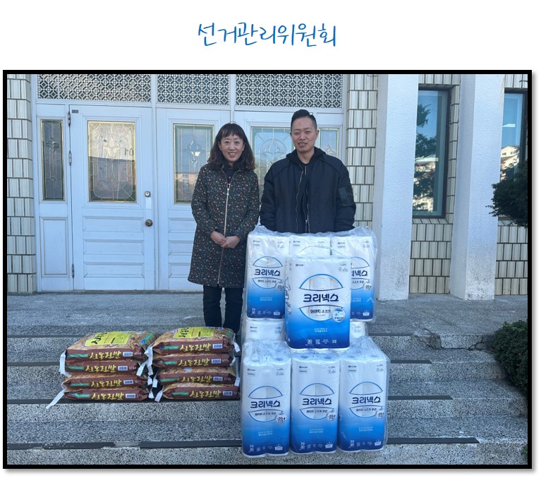 선거관리위원회 방문에 감사드립니다. 최고관리자 0 16 11.29 17:30 참조설명 : 연말을 맞아 사랑을 전해주신 선거관리위원회에 깊은 감사드립니다. 11/26 연말을 맞아 제주선거관리위원회에서 방문해주셨습니다.저희에게 항상 필요한 쌀(80kg)와 화장지(10묶음)을 전달해주시고 따뜻한 온정을 베풀어주셨습니다.감사합니다.