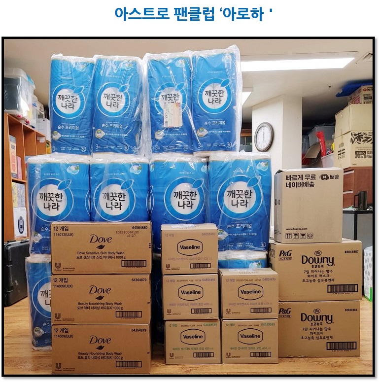 '아스트로' 팬클럽[아로하]에서 전해주신 선물. 최고관리자 0 78 01.26 14:35 참조설명 : '아스트로'멤버 故문빈군의 생일임을 기억하고 팬클럽 '아로하' 모임에서 전해주신 사랑. '아스트로' 멤버 故문빈군의 생일임을 기억하고 팬클럽[아로하]모임에서 아이들을 위해 따뜻한 사랑을 전해주셨습니다.특별한 날.. 저희 아이들을 위해 특별한 선물을 전해주신 팬클럽 회원 분들께 깊은 감사드립니다.새해 복 많이 받으세요.