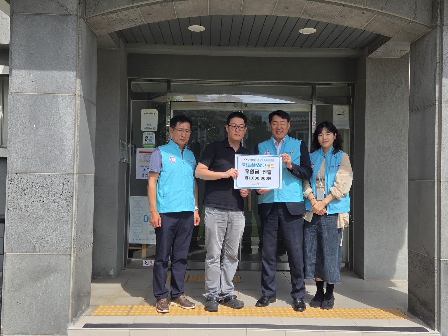 국민건강보험공단 제주지사에서 방문해주셨습니다. 최고관리자 0 56 09.24 14:44 참조설명 : 9월 24일 국민건강보험공단 제주지사 지사장님 외 관계자분들께서 저희 영아원을 방문해주셨습니다. 바쁘신 와중에도 직접 방문하시어 후원금 100만원을 전달해주심에 깊은 감사인사를 드립니다. 전달해주신 후원금은 아이들의 건강한 성장과 행복한 일상, 안전한 생활 환경을 위해 소중히 사용하도록 하겠습니다.