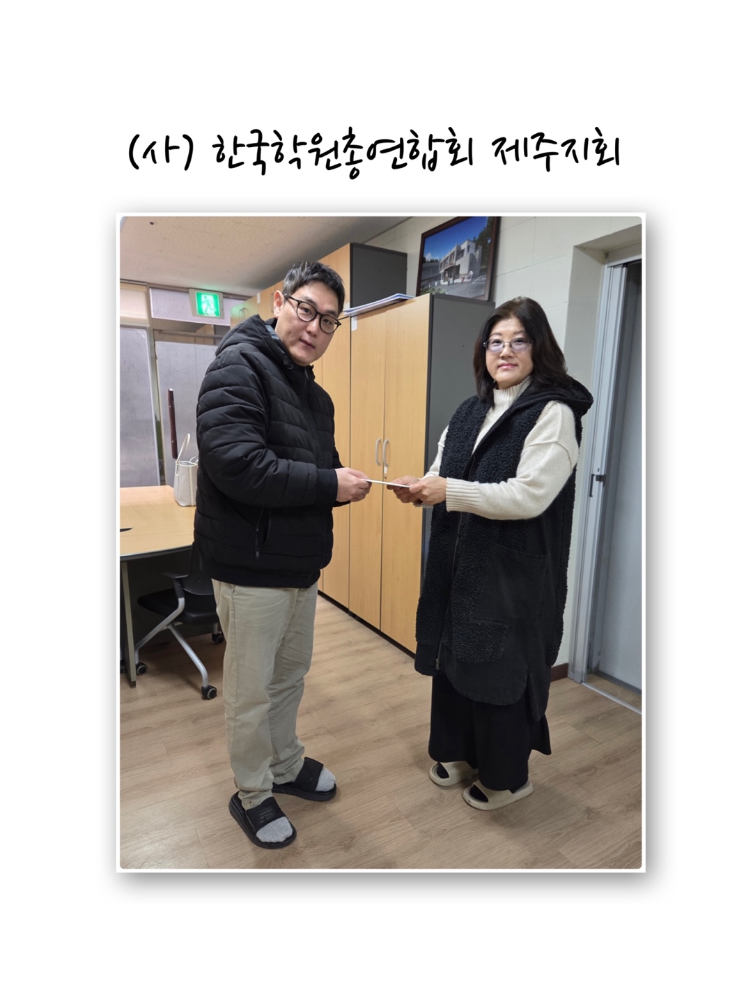 (사)한국학원총연합회 제주지회에서 방문해주셨습니다. 최고관리자 0 65 2025.12.29 10:59 참조설명 : 감사합니다 12월26일 (사)한국학원총연합회 제주지회에서 후원금 500,000원을 직접 전달해주셨습니다.다시 한번 감사인사 드립니다.