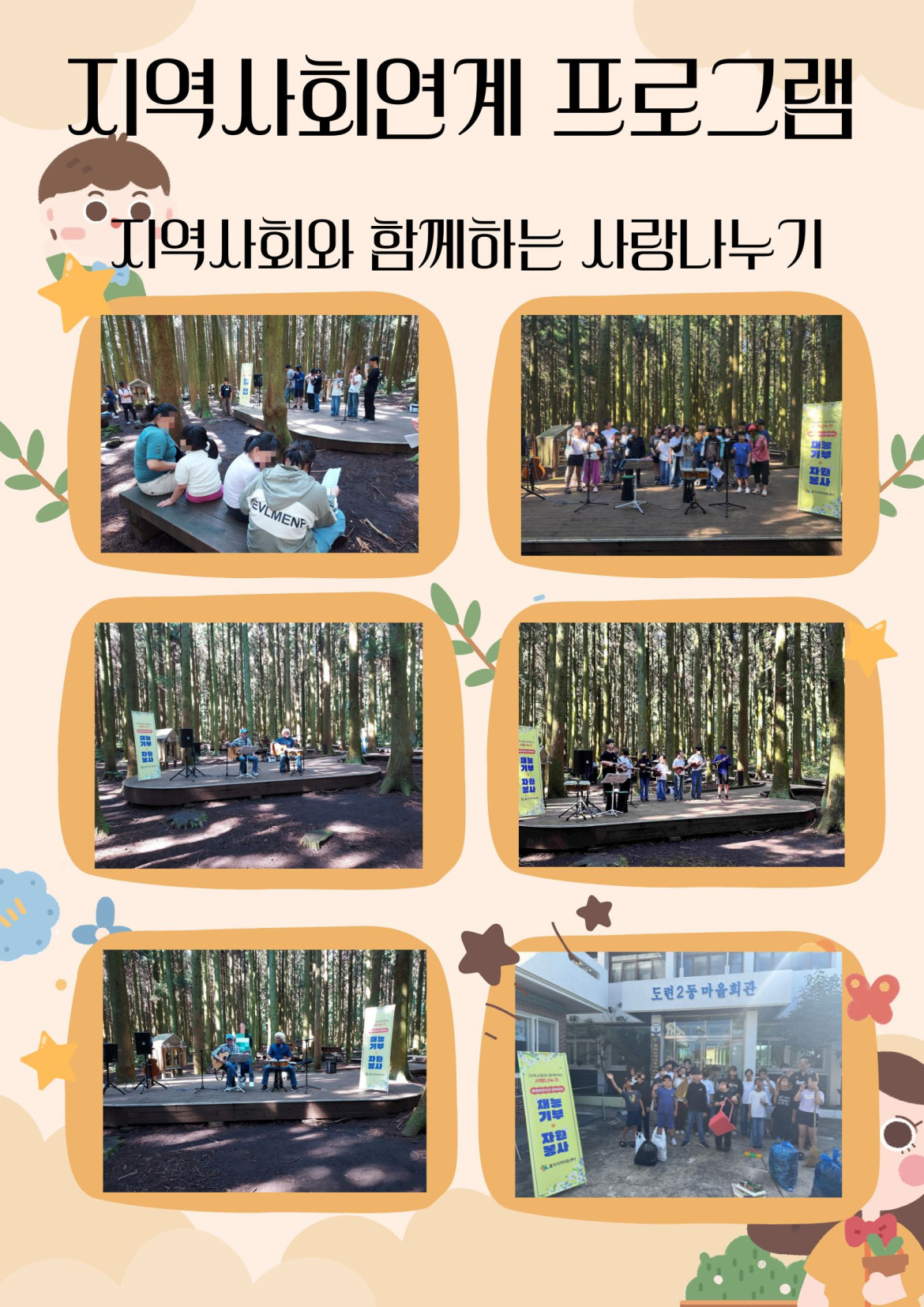 이번 지역사회와 함께하는사랑나누기 6회차는 사려니 숲길에서 공연을 진행하였습니다.