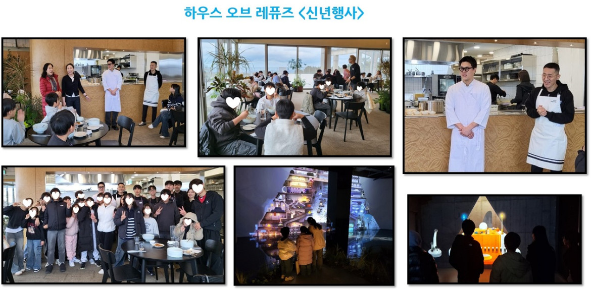 하우스 오브 레퓨즈[신년 떡국 나눔행사 ] 최고관리자 0 141 01.08 16:34 참조설명 : 새해 복 많이 받으세요. 1/1, 새해를 맞아 하우스 오브 레퓨즈 / 미슐랭 김선문에서 열린 강민구,송하슬람 셰프와 함께하는 '신년 떡국 나눔행사'에 아이들을 초청해주셨습니다. 특별한 떡국을 먹고 신비로운 복합문화공간을 체험하며 즐겁고 행복한 새해를 맞이하였습니다.아이들에게 소중하고 특별한 시간을 마련해주신 하우스 오브 레퓨즈 관계자 분들께 감사드립니다.강민구,송하슬람 셰프님들께서는 아이들을 위해 후원금 200만원도 전달해주셨습니다.새해 복 많이 받으세요.